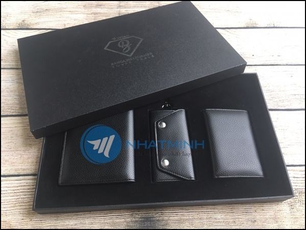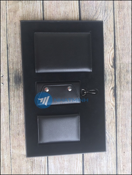 Bộ quà tặng gồm: Ví đựng passport + ví đựng namecard + ví móc khóa + hộp đựng