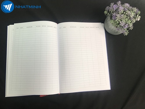 - Ruột sổ: Có 01-04 trang giấy Coucher 200gsm in 04 màu hình ảnh, nội dung quảng cáo của khách hàng. 196 trang giấy 0ff 80gsm. Nội dung in ấn theo yêu cầu.